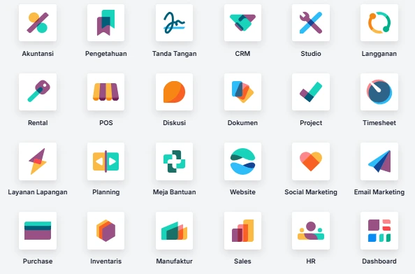 Odoo adalah sistem ERP terintegrasi yang open source mencakup semua kebutuhan perusahaan kamu seperti CRM, eCommerce, akuntansi, inventaris, point of sales, manajemen project, dan seterusnya.