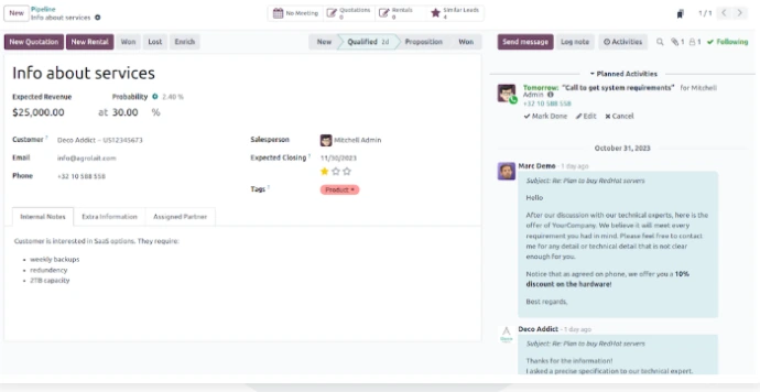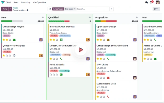 CRM tidak lagi berdiri sendiri. Odoo CRM terhubung langsung dengan proses penjualan, penawaran, hingga penagihan dalam satu alur yang jelas dan terukur.